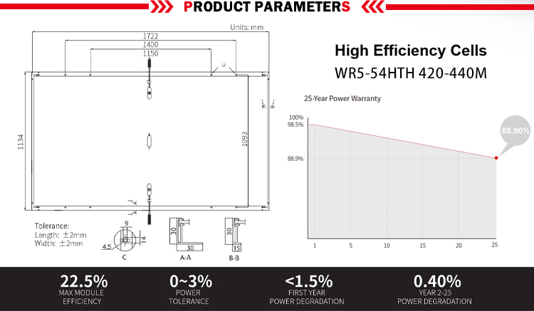 | Module Type | WR5-54HTH-420M | WR5-54HTH-425M | WR5-54HTH-430M | WR5-54HTH-435M | WR5-54HTH-440M |